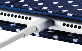 カバーを装着したままで液晶画面の確認、本体の操作、各種ボタン操作、Lightningコネクタへの接続、ヘッドホンの接続が可能です。