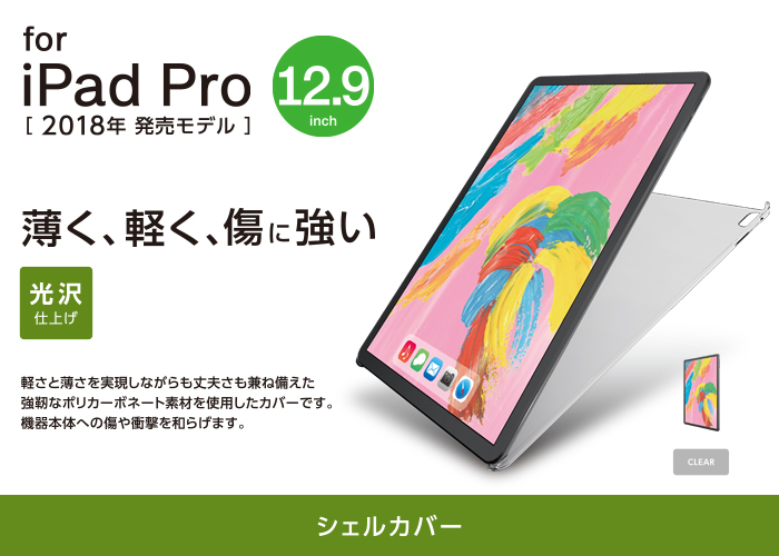 傷や汚れから守り、軽くて丈夫なポリカーボネート製のiPad Pro 12.9インチ 2018年モデル用シェルカバーです。