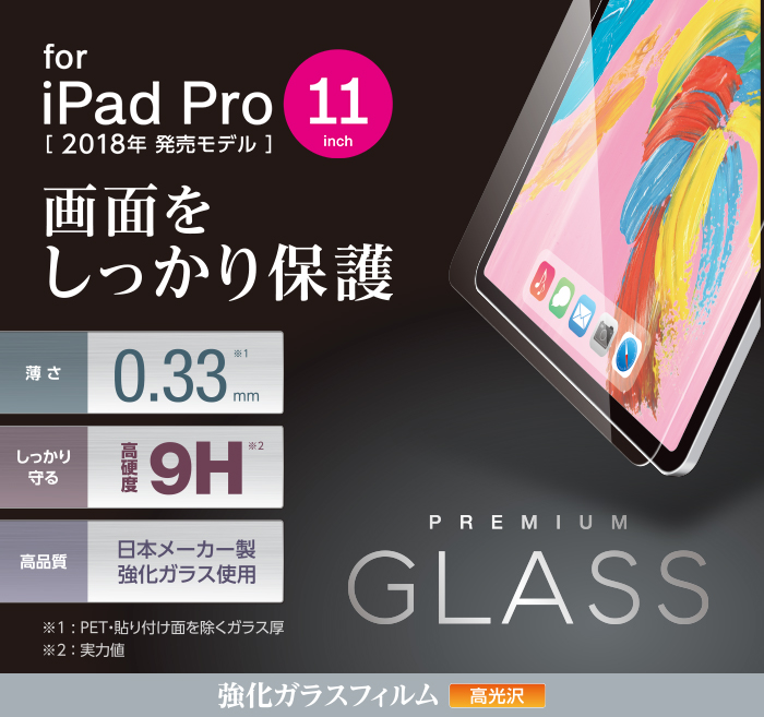 表面硬度9H(実力値)の強化ガラスを採用し、割れにくく、安心。