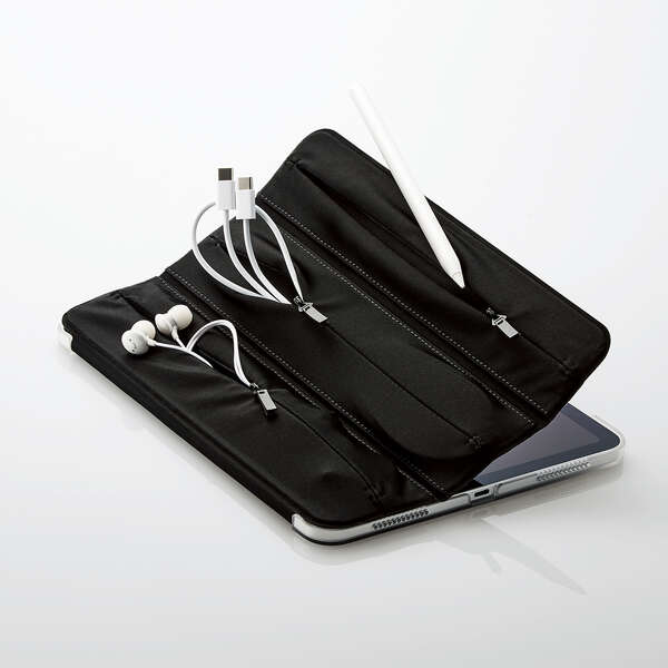 ポケットに周辺機器を入れて持ち運べるフラップケース