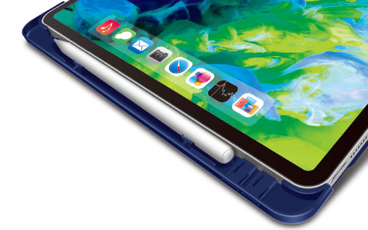 強靭なポリカーボネート素材を使用し、機器本体への傷や衝撃を和らげる、Apple Pencilが収納できるiPad Pro 11インチ 2020年春モデル用ハードフラップケースです。