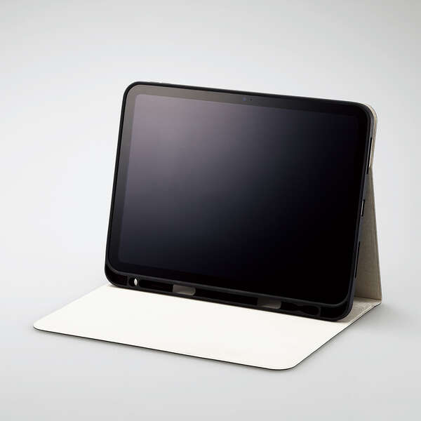 弾力性のあるTPU素材が傷と衝撃から守るiPad 第10世代(2022年モデル)用フラップケースです。360度回転でき、縦向き、横向きのお好きな角度で使用できます。