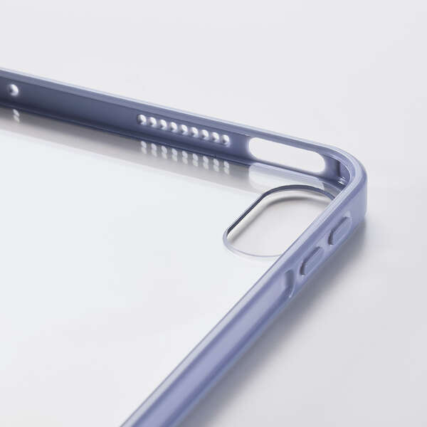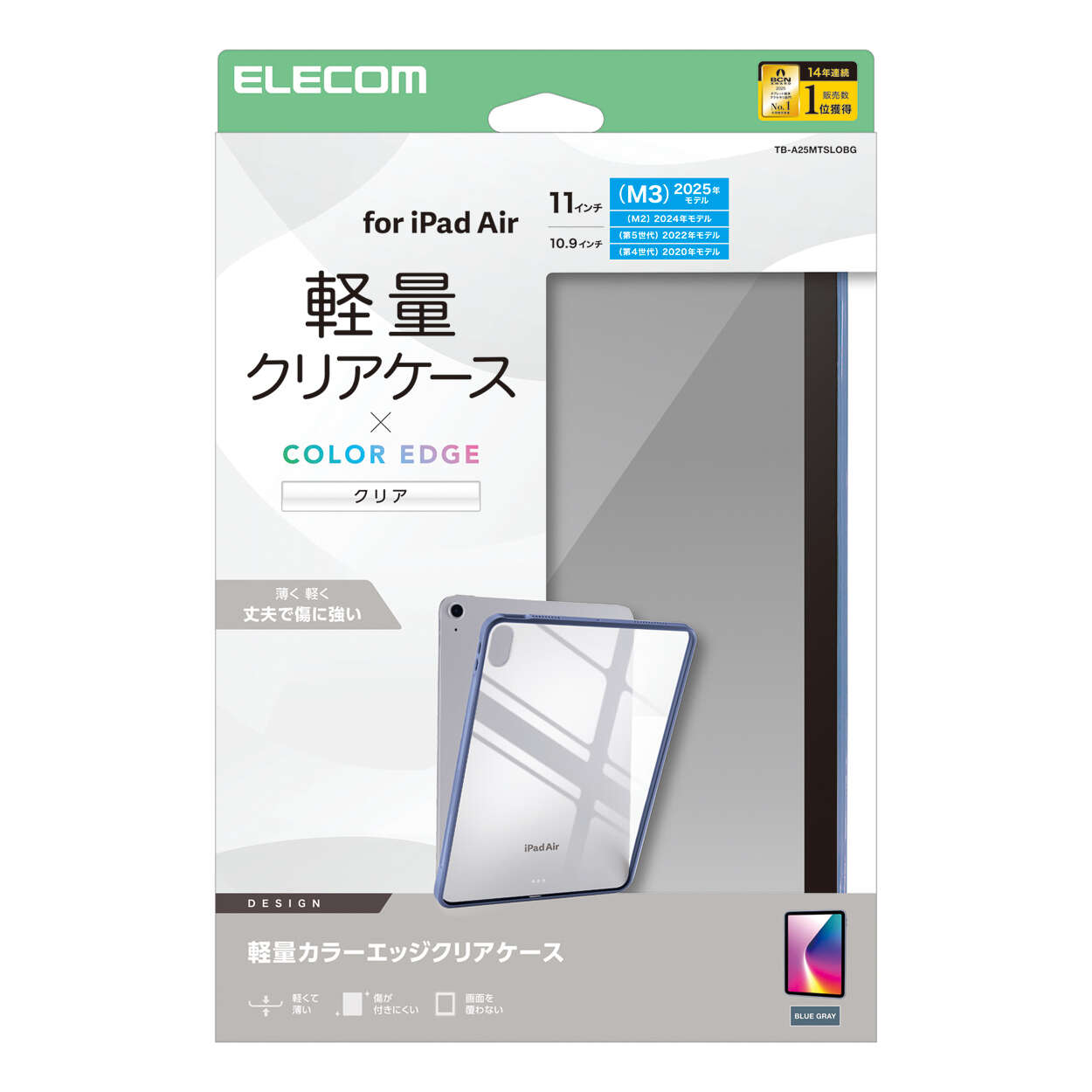 エッジ部分のカラーがアクセントとなる軽く、衝撃に強いクリアケースです。背面は透明感と艶が美しいクリア素材を採用。側面に弾力性のあるTPU素材を、背面に指紋が付きにくいポリカーボネート素材を使用しました。