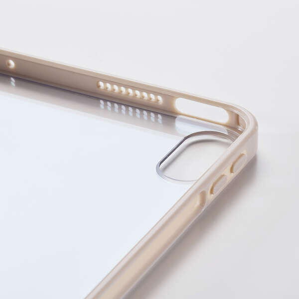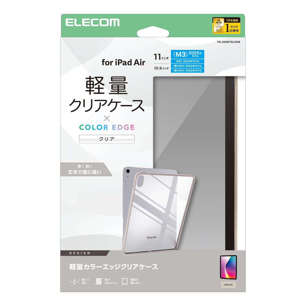 エッジ部分のカラーがアクセントとなる軽く、衝撃に強いクリアケースです。背面は透明感と艶が美しいクリア素材を採用。側面に弾力性のあるTPU素材を、背面に指紋が付きにくいポリカーボネート素材を使用しました。