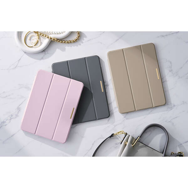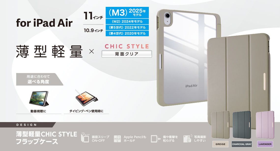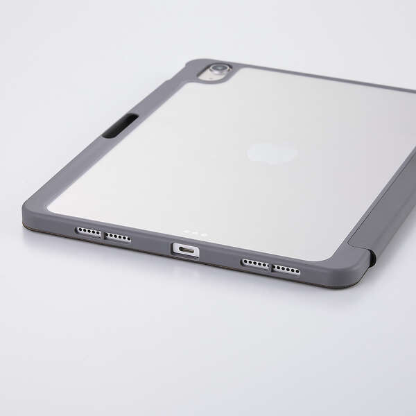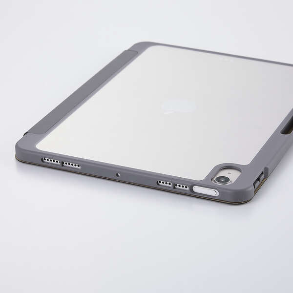 さらりとした表面の質感とゴールドパーツで上品さを演出するフラップケースです。背面はクリアで端末のデザインを引き立てます。