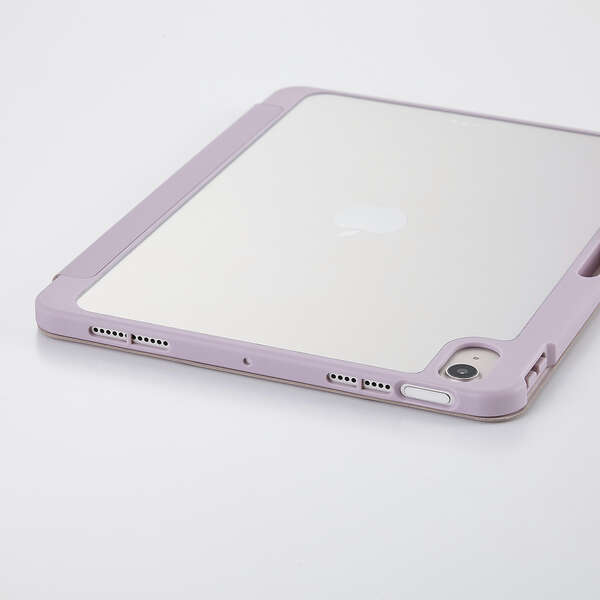 さらりとした表面の質感とゴールドパーツで上品さを演出するフラップケースです。背面はクリアで端末のデザインを引き立てます。
