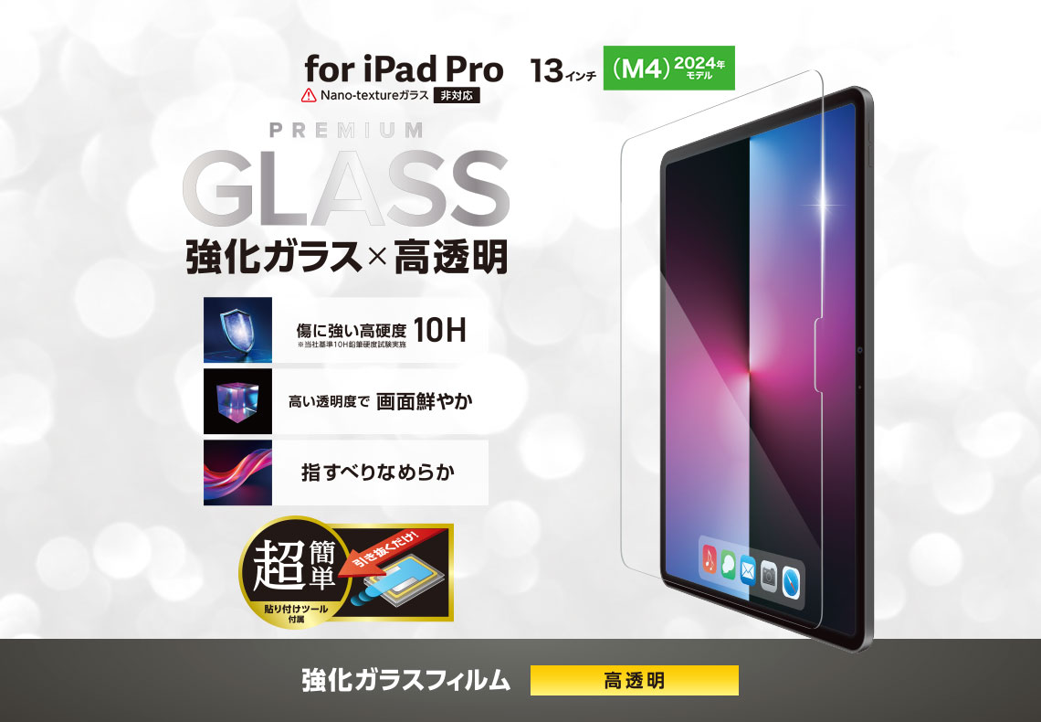 「リアルガラス」を採用した“液晶保護ガラス”です。美しい透明度と、ガラス特有のなめらかな指すべりを実現しました。