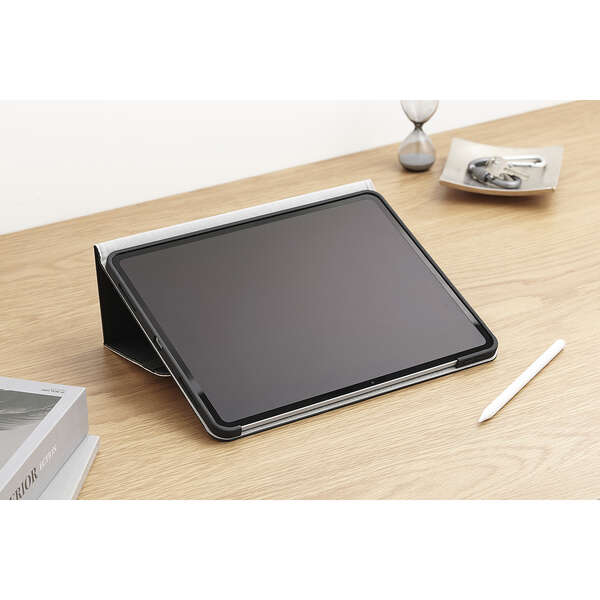 ベルト付きで持ち運びに最適な軽量設計の耐衝撃フラップケースです。動画視聴やタイピングなどシーンに合わせて2アングルにできます。ペンホルダー付き。ビジネスシーンでのご利用にもおすすめです。