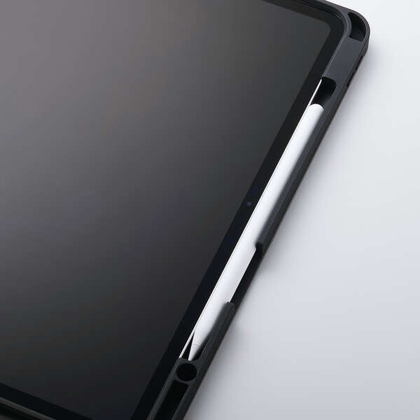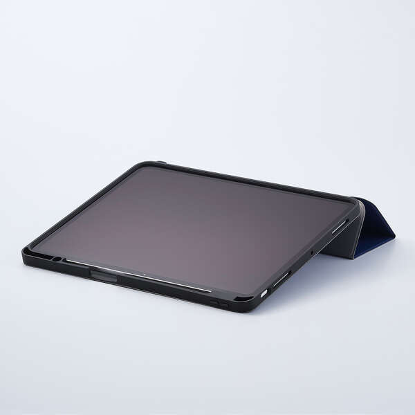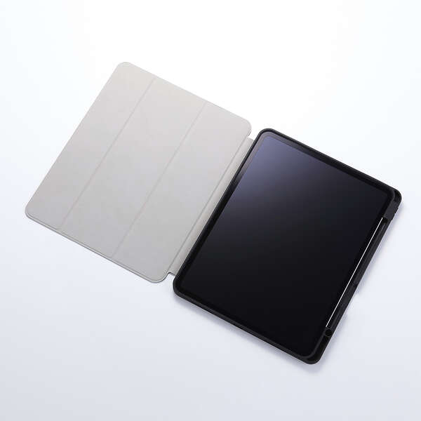 持ち歩き時に画面を保護するフラップ付きです。フラップを閉じるとスリープモードになり、開けるとスリープから復帰します。