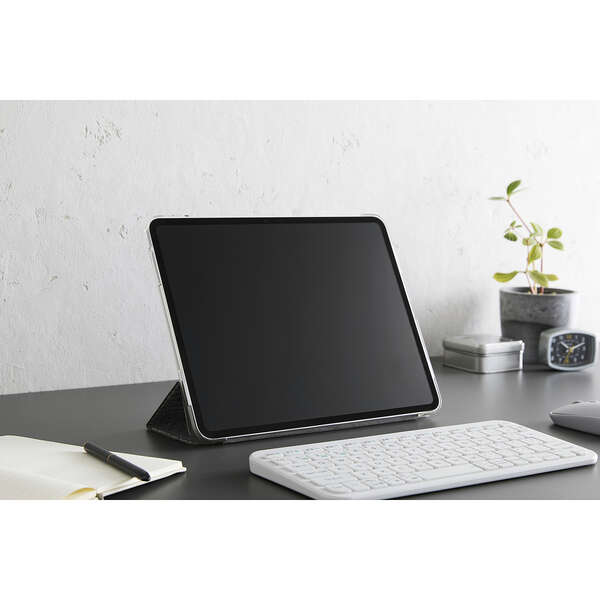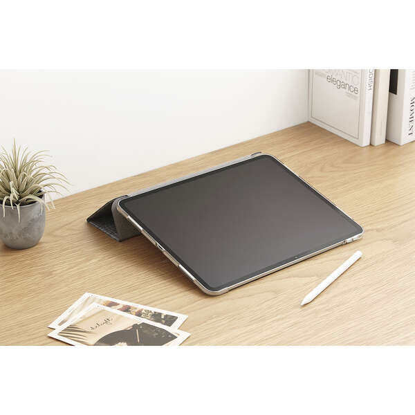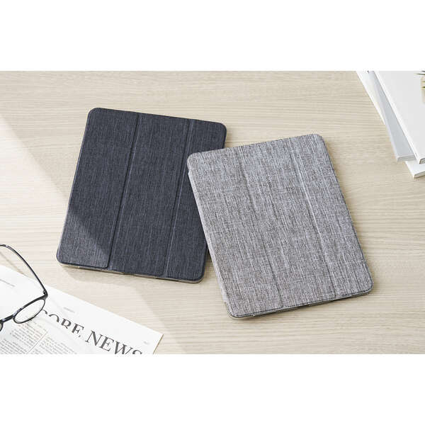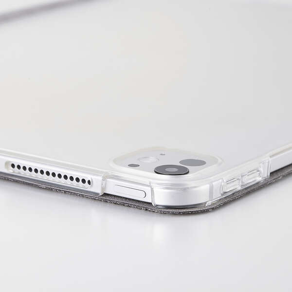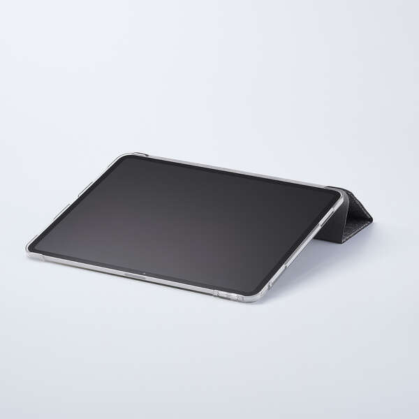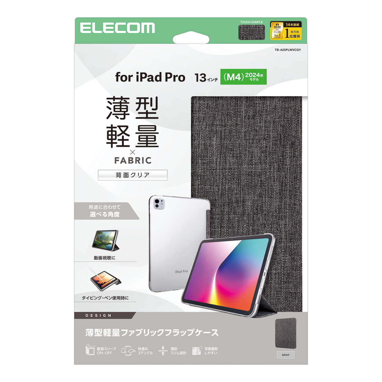 どんなシーンにも使いやすいファブリック生地を採用!軽さを重視する人におすすめの極限まで薄さにこだわったフラップケースです。シーンに合わせて2アングルにできます。端末の背面が見えるクリア素材を採用しています。