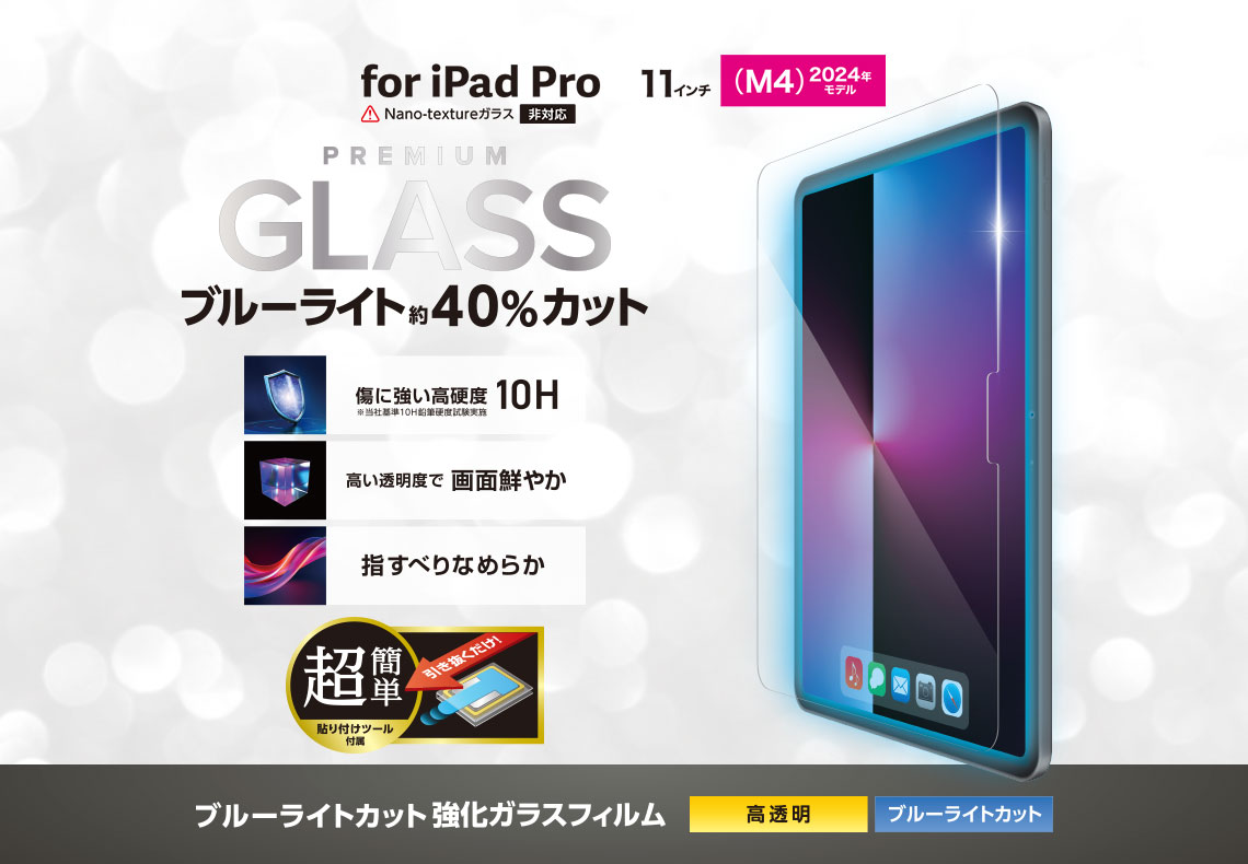 11インチiPad Pro(M4) ガラスフィルム ブルーライトカット 超簡単貼り付けツール付