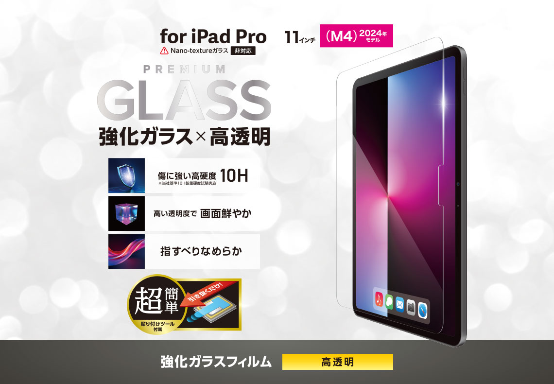 11インチiPad Pro(M4) ガラスフィルム 高透明 超簡単貼り付けツール付