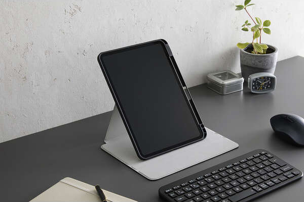 背面を折り曲げることでスタンドとして使用でき、動画視聴などを快適に楽しめます。