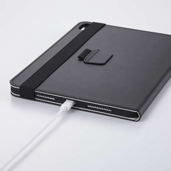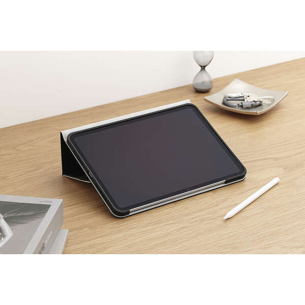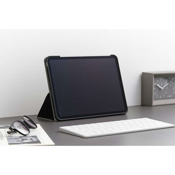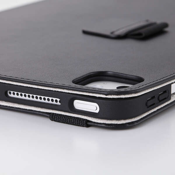 ベルト付きで持ち運びに最適な軽量設計の耐衝撃フラップケースです。動画視聴やタイピングなどシーンに合わせて2アングルにできます。ペンホルダー付き。ビジネスシーンでのご利用にもおすすめです。