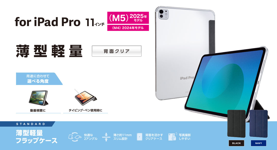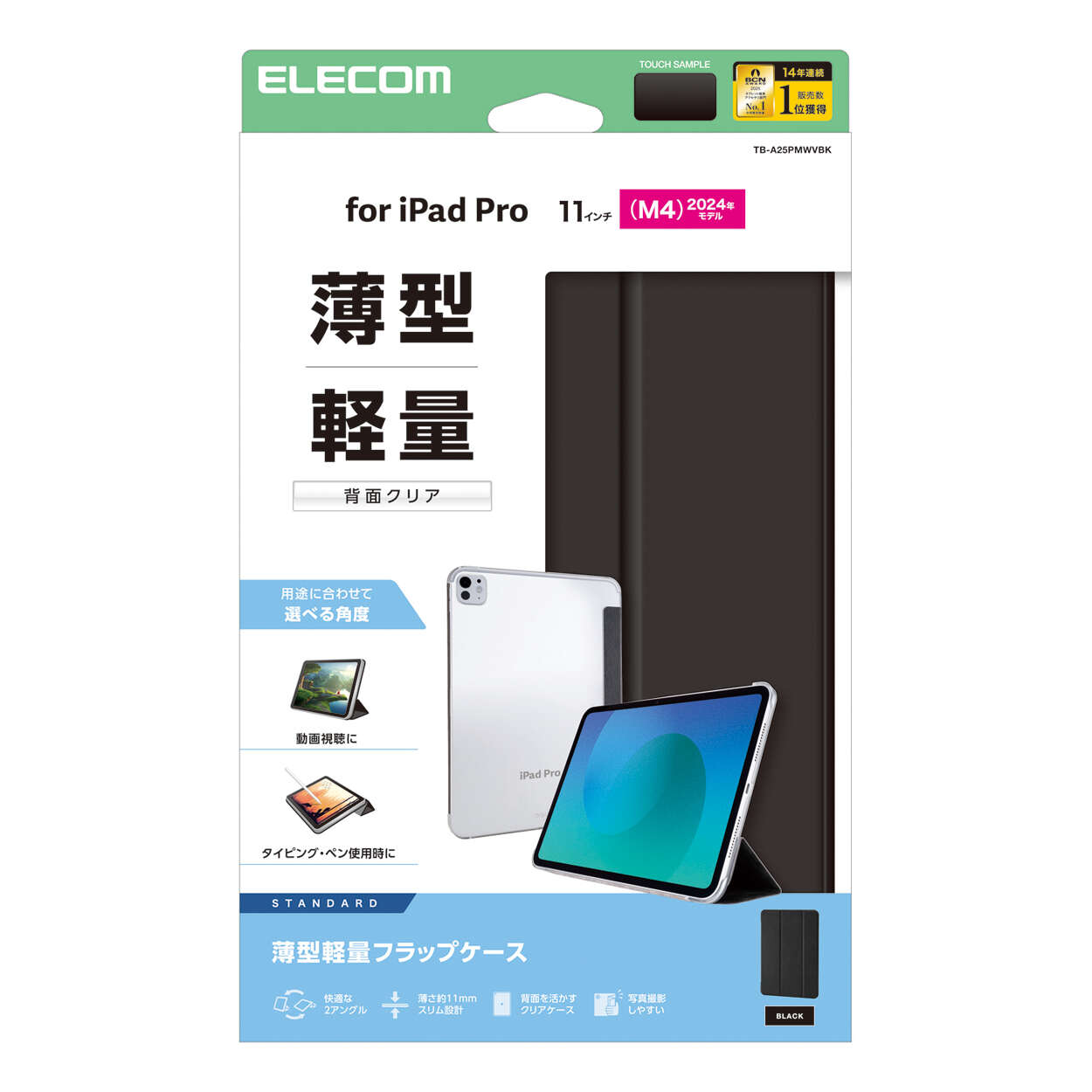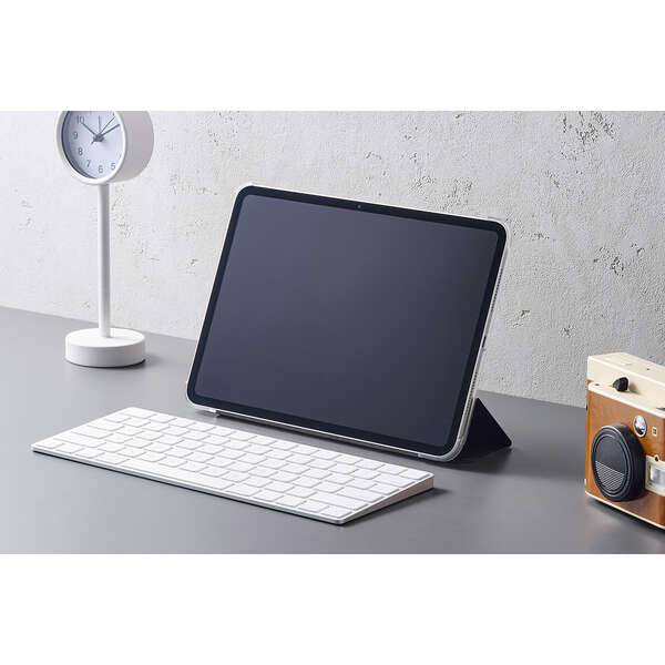 軽さを重視する人におすすめの極限まで薄さにこだわったフラップケースです。シーンに合わせて2アングルにできます。端末の背面が見えるクリア素材を採用しています。