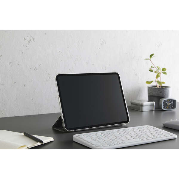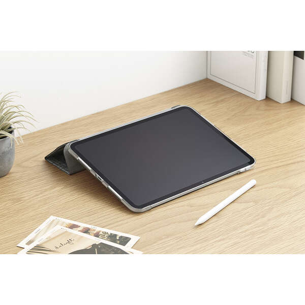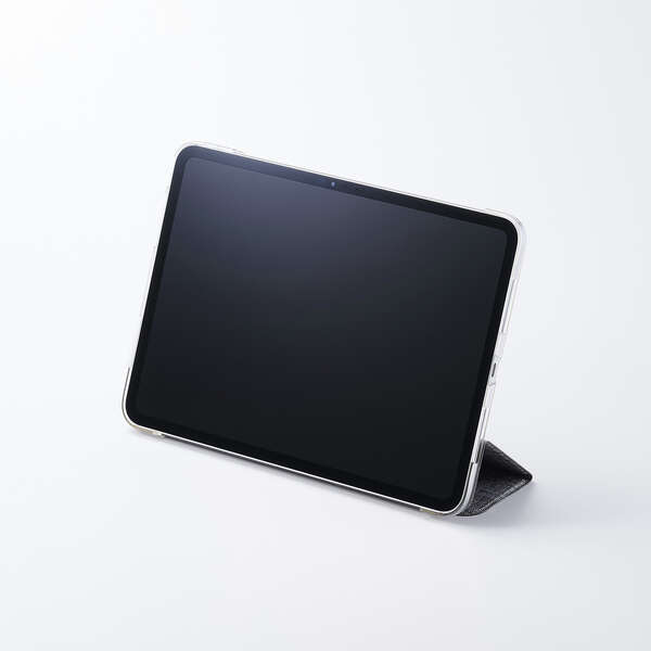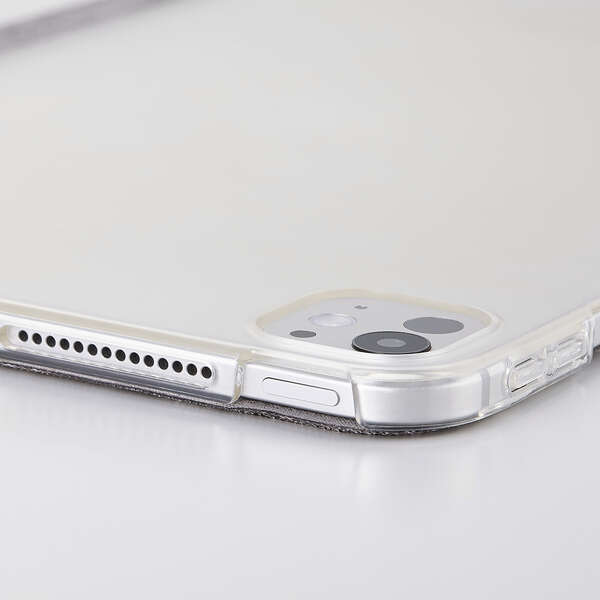 どんなシーンにも使いやすいファブリック生地を採用!軽さを重視する人におすすめの極限まで薄さにこだわったフラップケースです。シーンに合わせて2アングルにできます。端末の背面が見えるクリア素材を採用しています。
