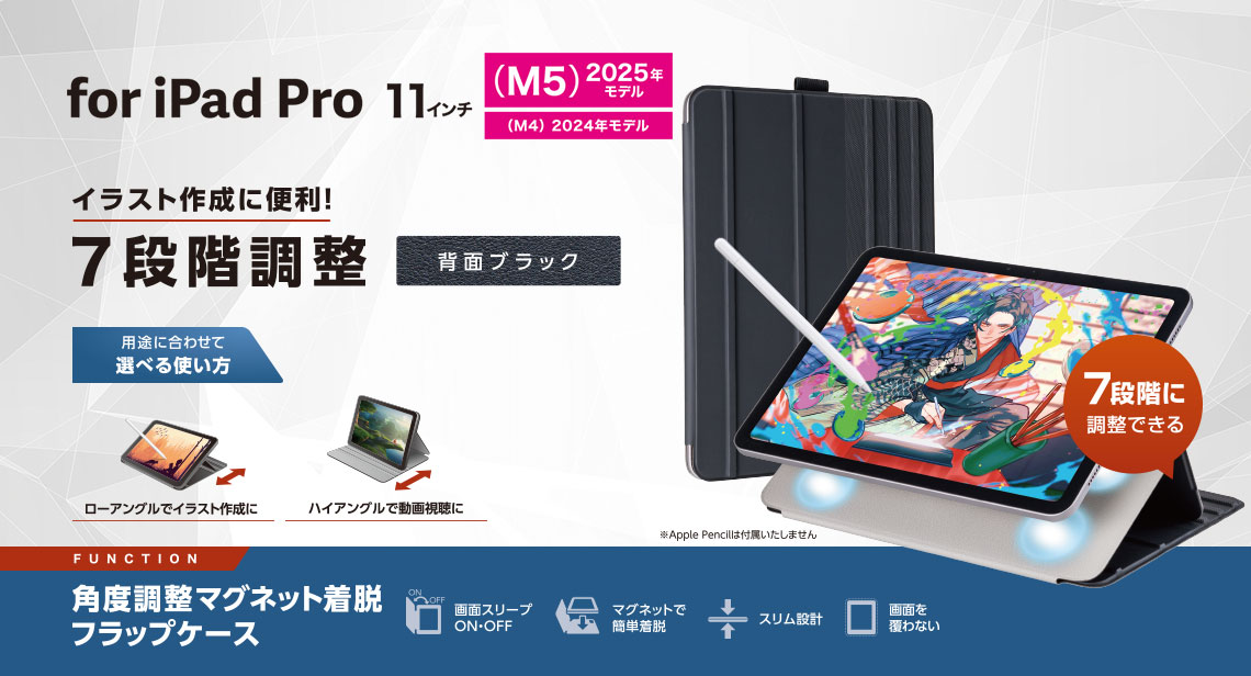 ドローイングに最適!シーンに合わせた7段階の角度調整が可能な薄さにこだわったスリムなフラップケースです。マグネット内蔵のケースに簡単に取り付け出来ます。