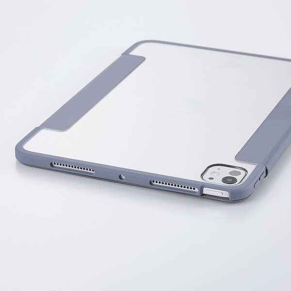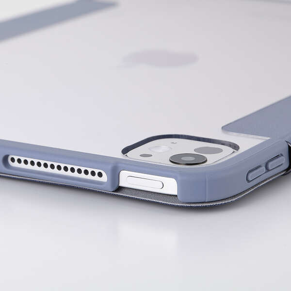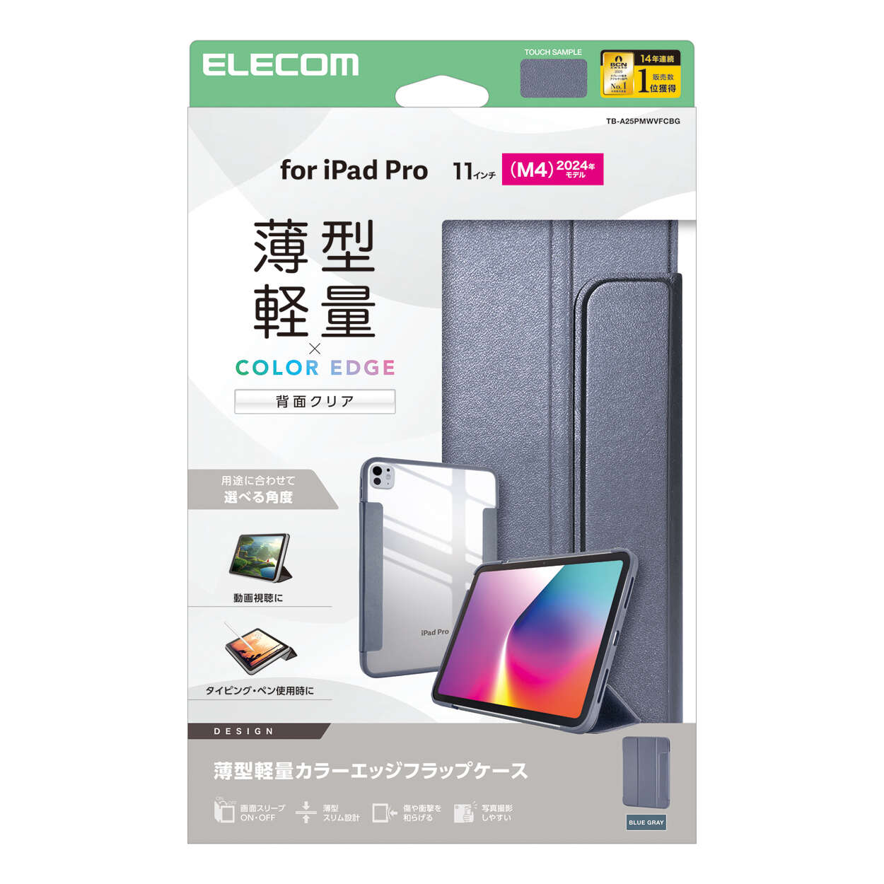 エッジ部分のカラーがアクセントとなるスタイリッシュなフラップケースです。背面は透明感と艶が美しいクリア素材を採用。弾力性のあるTPU素材を側面に使い、薄く、軽く、衝撃に強い設計を実現しました。