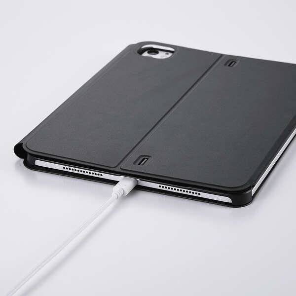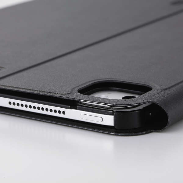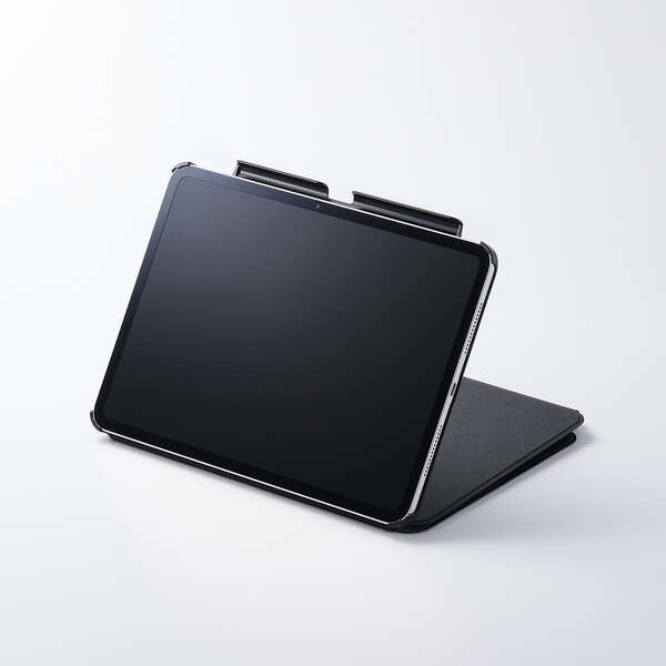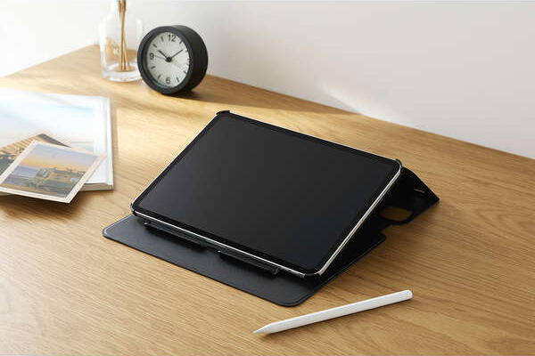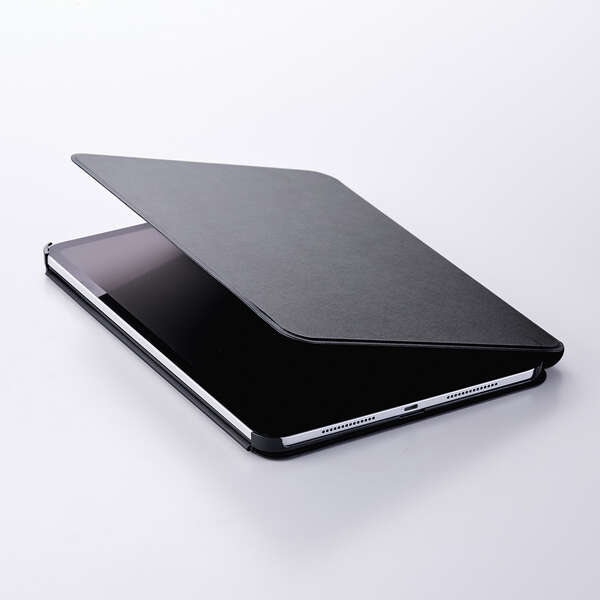 持ち歩き時に画面を保護するフラップ付きです。フラップを閉じるとスリープモードになり、開けるとスリープから復帰します。