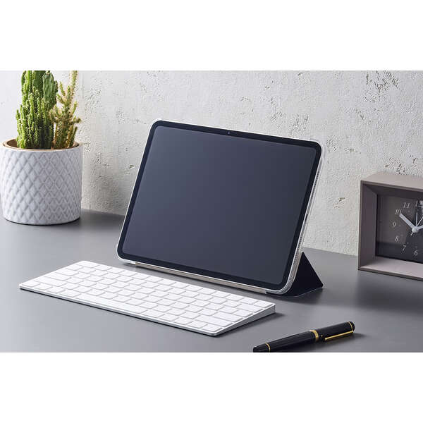 軽さを重視する人におすすめの極限まで薄さにこだわったフラップケースです。シーンに合わせて2アングルにできます。端末の背面が見えるクリア素材を採用しています。