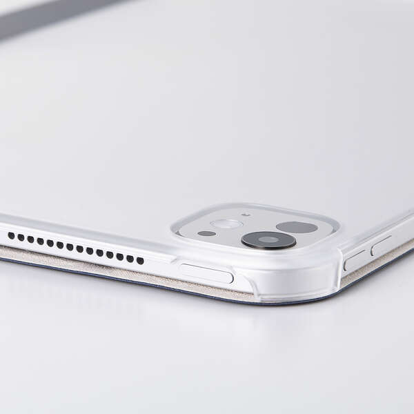持ち歩き時に画面を保護するフラップ付きです。フラップを閉じるとスリープモードになり、開けるとスリープから復帰します。