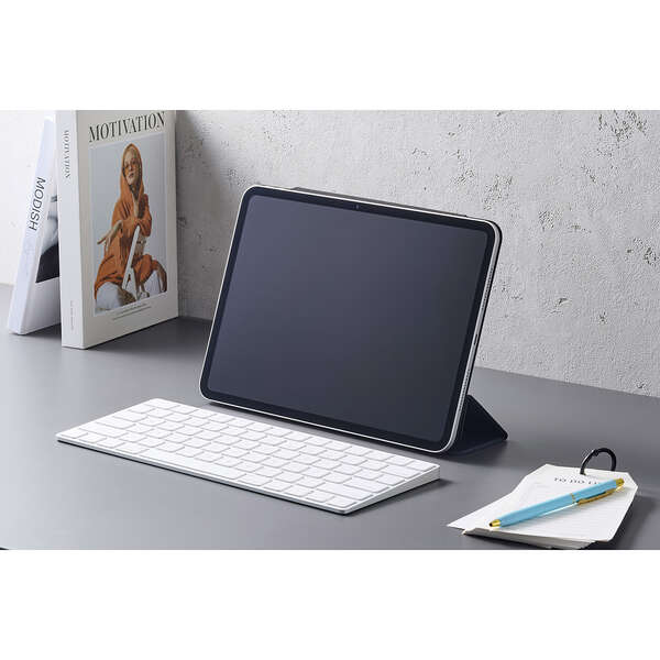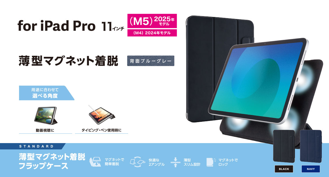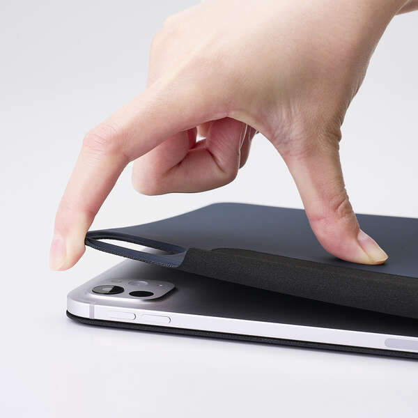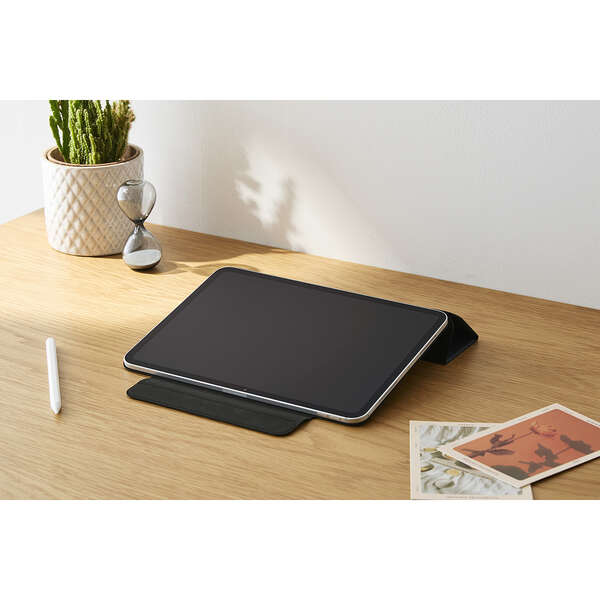 端末本体に内蔵されたマグネットを利用して、簡単に着脱できる超薄型・軽量設計のフラップケースです。動画視聴やタイピング等のシーンに合わせて2アングルにできます。