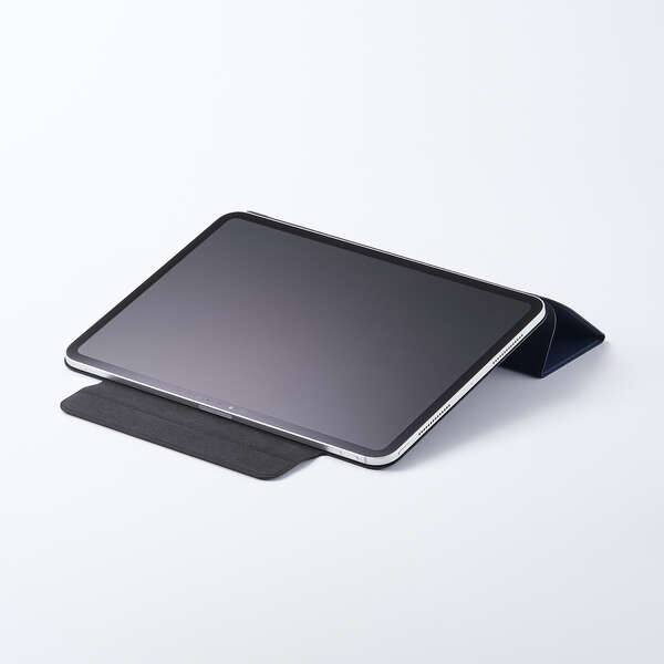 フラップカバーを三つ折りにすることで、動画視聴と、ドローイング・タイピングに最適な2通りの角度で使用できます。