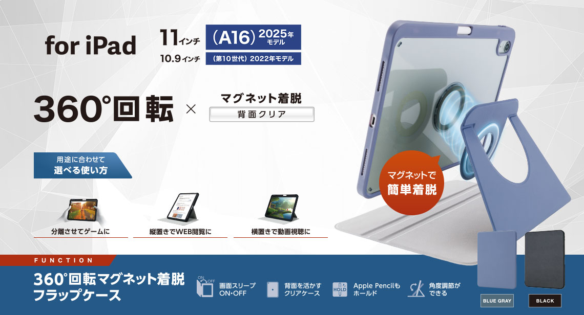 360度回転でき、縦向き、横向きのお好きな角度で使用できるフラップケースです。ケースとフラップ部分を分離して使うことができます。