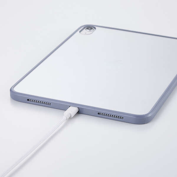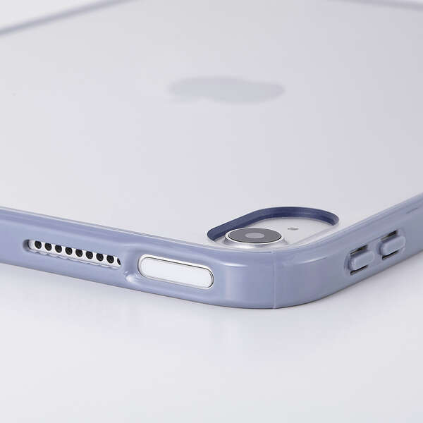 エッジ部分のカラーがアクセントとなる軽く、衝撃に強いクリアケースです。側面に弾力性のあるTPU素材を、背面に指紋が付きにくいポリカーボネート素材を使用しました。