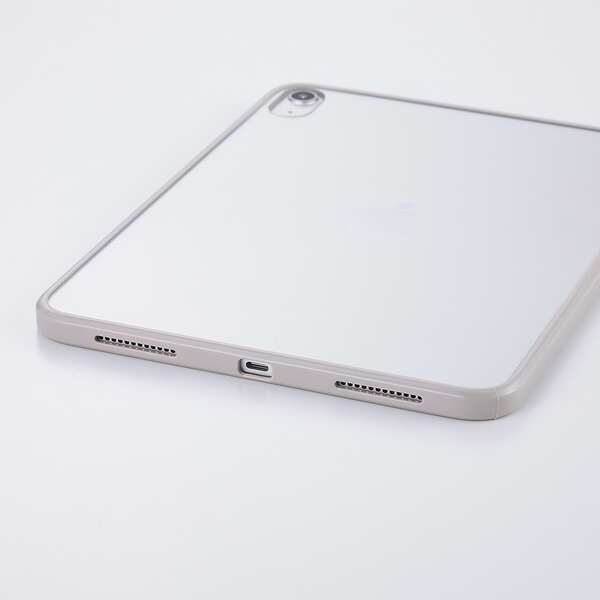 エッジ部分のカラーがアクセントとなる軽く、衝撃に強いクリアケースです。側面に弾力性のあるTPU素材を、背面に指紋が付きにくいポリカーボネート素材を使用しました。