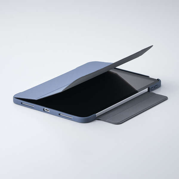 持ち歩き時に画面を保護するフラップ付きです。フラップを閉じるとスリープモードになり、開けるとスリープから復帰します。