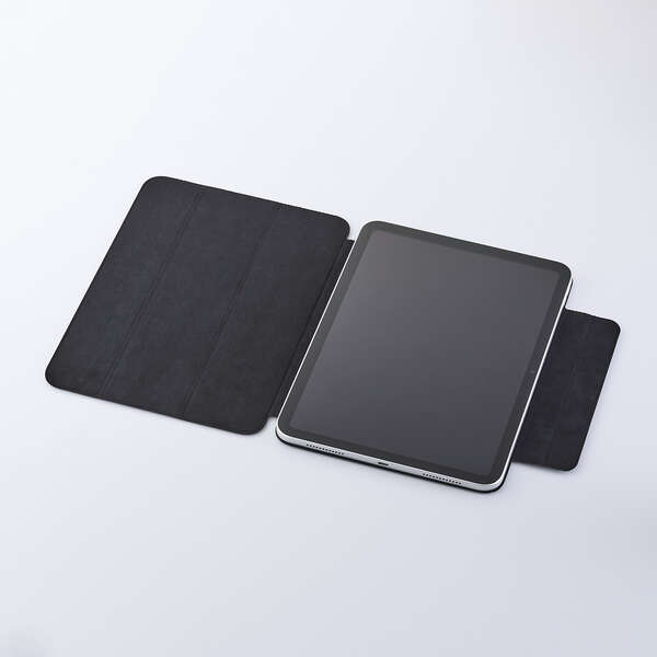 フラップカバーを三つ折りにすることで、動画視聴と、ドローイング・タイピングに最適な2通りの角度で使用できます。