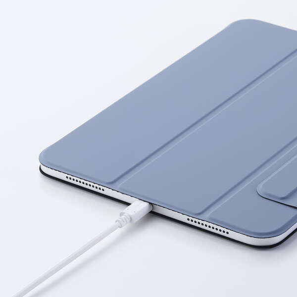 端末本体に内蔵されたマグネットを利用して、簡単に着脱できる超薄型・軽量設計のフラップケースです。動画視聴やタイピング等のシーンに合わせて2アングルにできます。