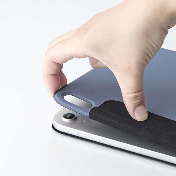 マグネット式の留め具を採用しており、Apple Pencilを収納したままフラップを固定できます。