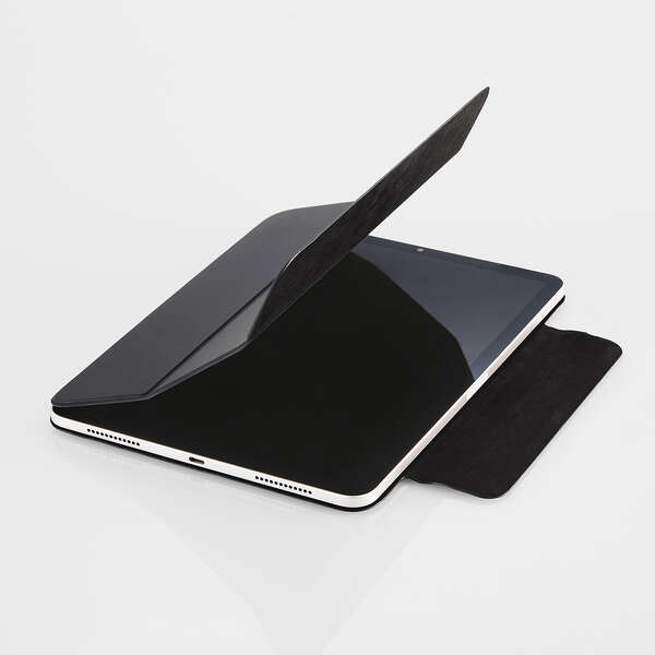 端末本体に内蔵されたマグネットを利用して、簡単に着脱できる超薄型・軽量設計のフラップケースです。動画視聴やタイピング等のシーンに合わせて2アングルにできます。