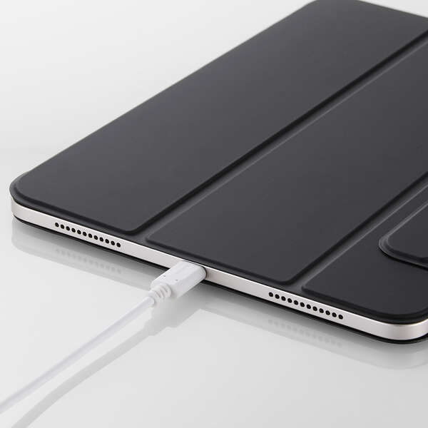 フラップカバーを三つ折りにすることで、動画視聴と、ドローイング・タイピングに最適な2通りの角度で使用できます。