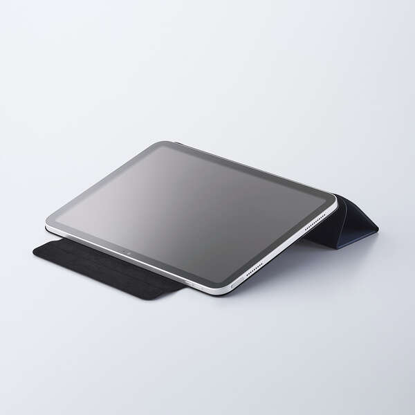 フラップカバーを三つ折りにすることで、動画視聴と、ドローイング・タイピングに最適な2通りの角度で使用できます。