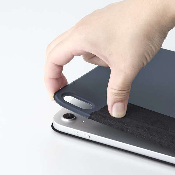 マグネット式の留め具を採用しており、Apple Pencilを収納したままフラップを固定できます。