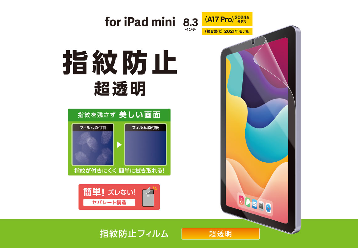 フィルム表面の指紋防止加工により、指紋が付きにくく残った場合でも簡単に拭き取れます。タッチ操作をしても指紋が目立ちにくくなっています。