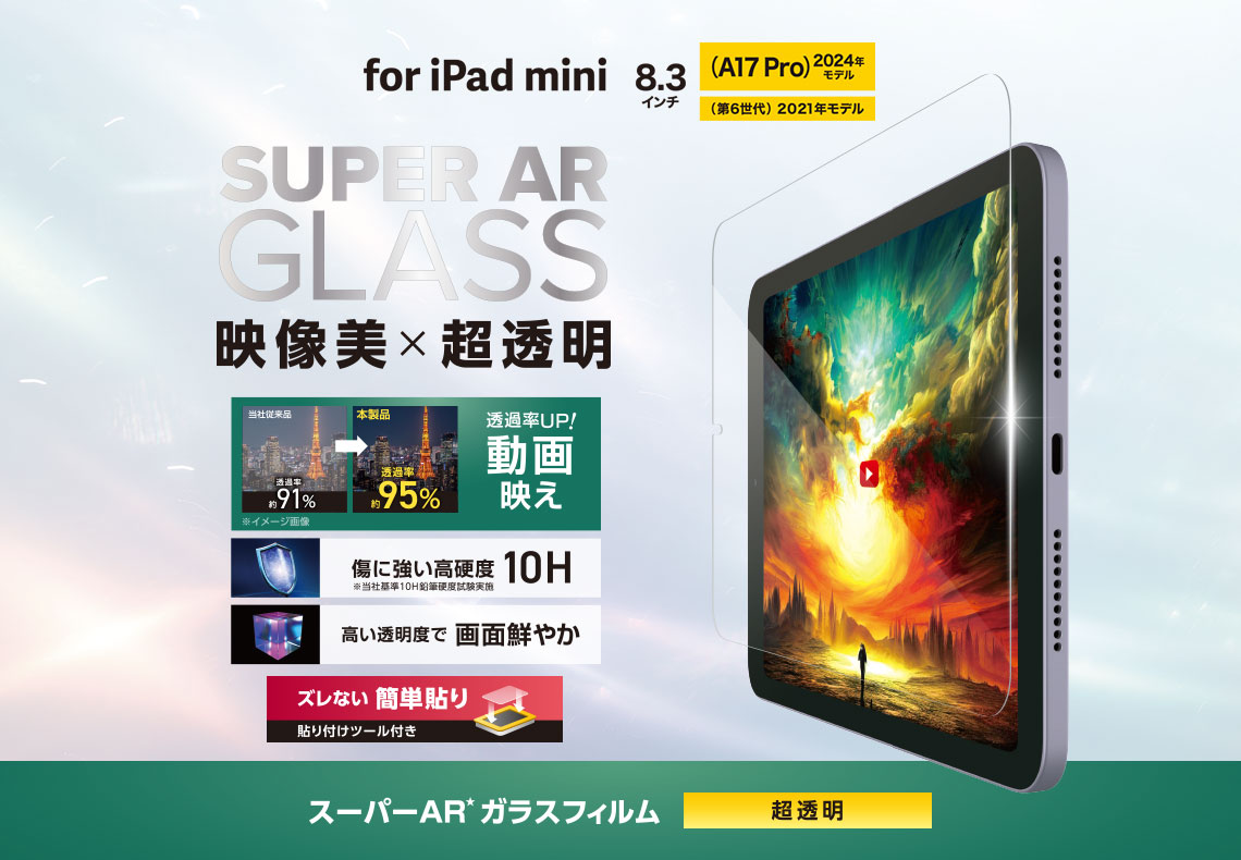 「リアルガラス」を採用した“液晶保護ガラス”です。美しい透明度と、ガラス特有のなめらかな指すべりを実現しました。