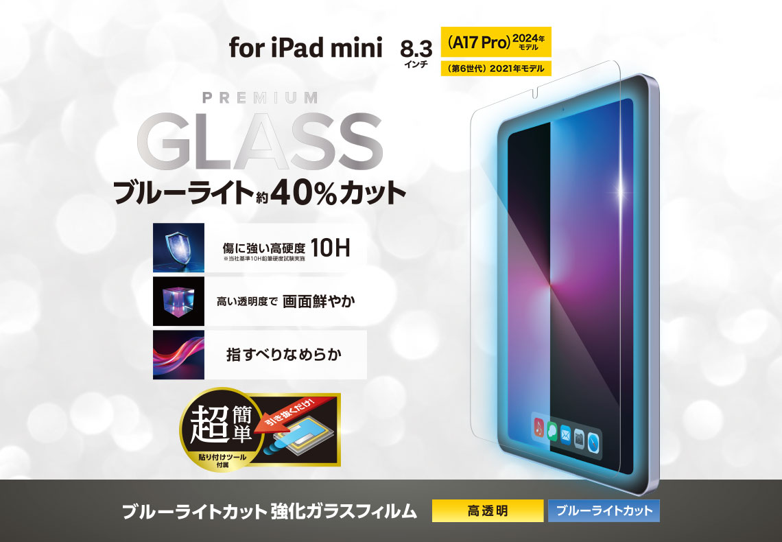 「リアルガラス」を採用した“液晶保護ガラス”です。美しい透明度と、ガラス特有のなめらかな指すべりを実現しました。