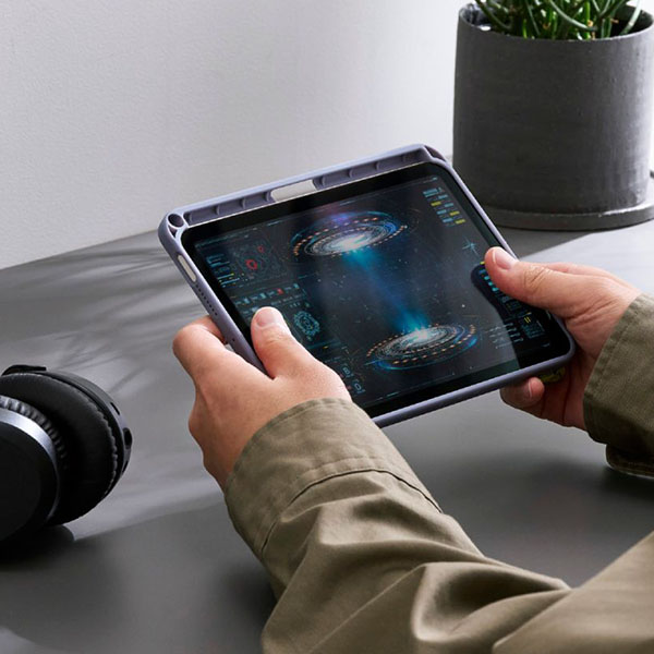 背面を折り曲げることでスタンドとして使用でき、動画視聴などを快適に楽しめます。