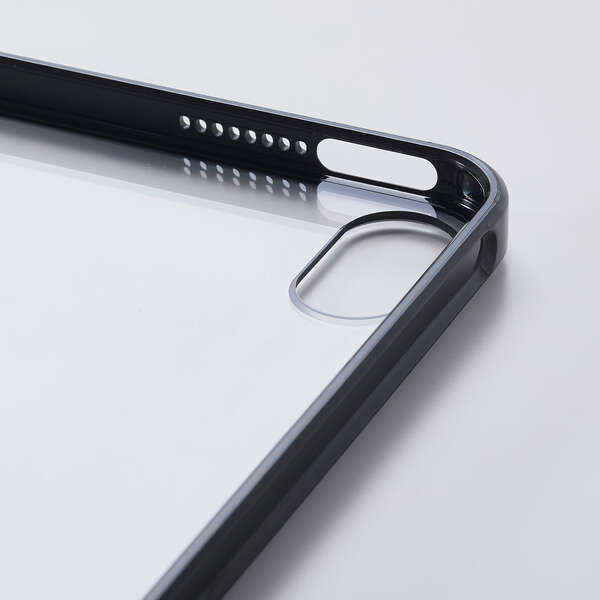 エッジ部分のカラーがアクセントとなる軽く、衝撃に強いクリアケースです。背面は透明感と艶が美しいクリア素材を採用。側面に弾力性のあるTPU素材を、背面に指紋が付きにくいポリカーボネート素材を使用しました。