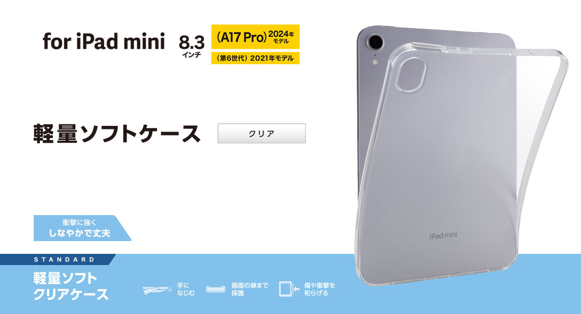 透明で軽量なソフトクリアケースです。強じんな耐久性としなやかな弾力性をあわせ持ったTPU素材を使用し、端末を保護します。