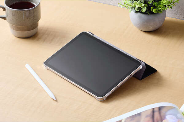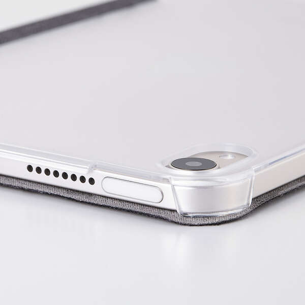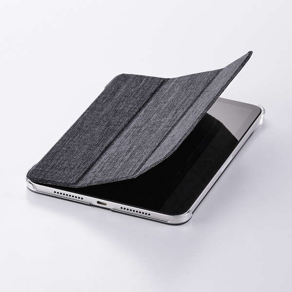 持ち歩き時に画面を保護するフラップ付きです。フラップを閉じるとスリープモードになり、開けるとスリープから復帰します。