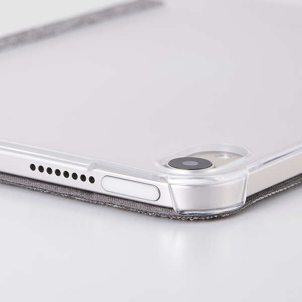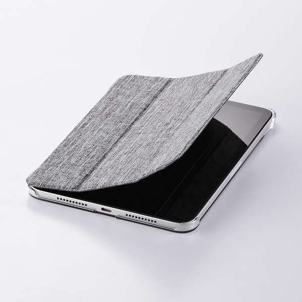 持ち歩き時に画面を保護するフラップ付きです。フラップを閉じるとスリープモードになり、開けるとスリープから復帰します。