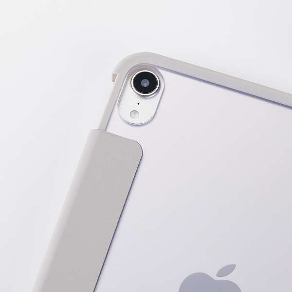 エッジ部分のカラーがアクセントとなるスタイリッシュなフラップケースです。背面は透明感と艶が美しいクリア素材を採用。弾力性のあるTPU素材を側面に使い、薄く、軽く、衝撃に強い設計を実現しました。