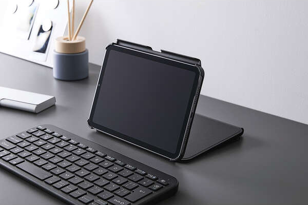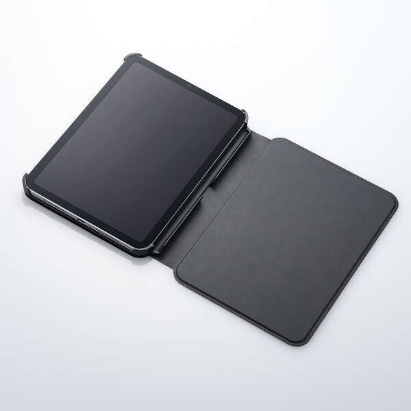 持ち歩き時に画面を保護するフラップ付きです。フラップを閉じるとスリープモードになり、開けるとスリープから復帰します。