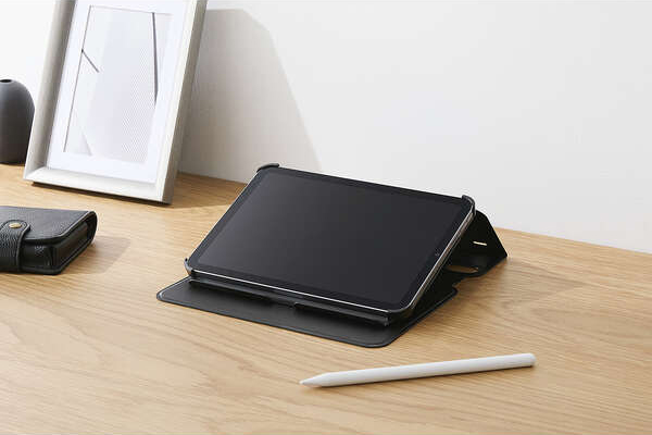 モニターとして使える!端末を高い位置で固定できるフラップケースです。