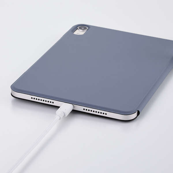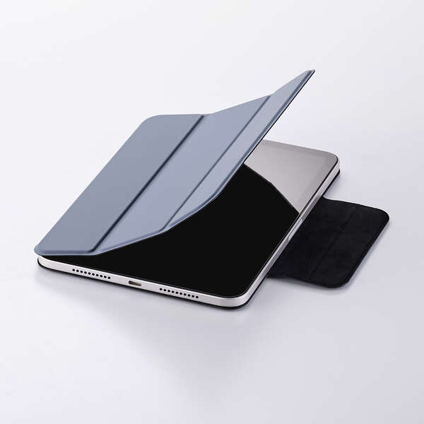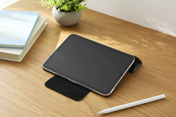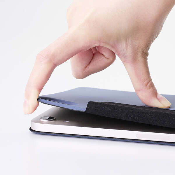 端末本体に内蔵されたマグネットを利用して、簡単に着脱できる超薄型・軽量設計のフラップケースです。動画視聴やタイピング等のシーンに合わせて2アングルにできます。